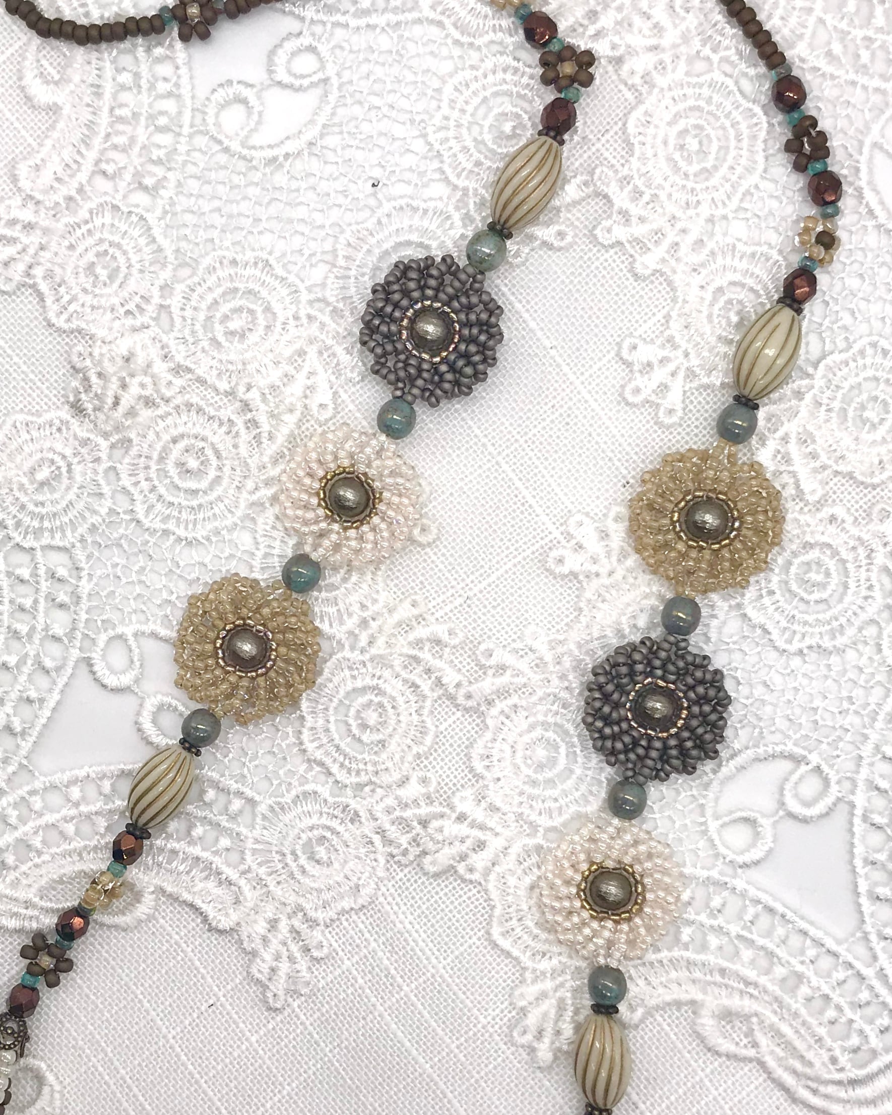 ネックレス下部はヘリンボーンステッチチューブラーになります。
