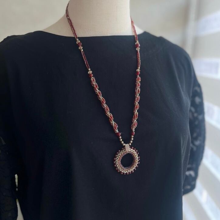 ネックレス長さ75㎝、サークル径4㎝。